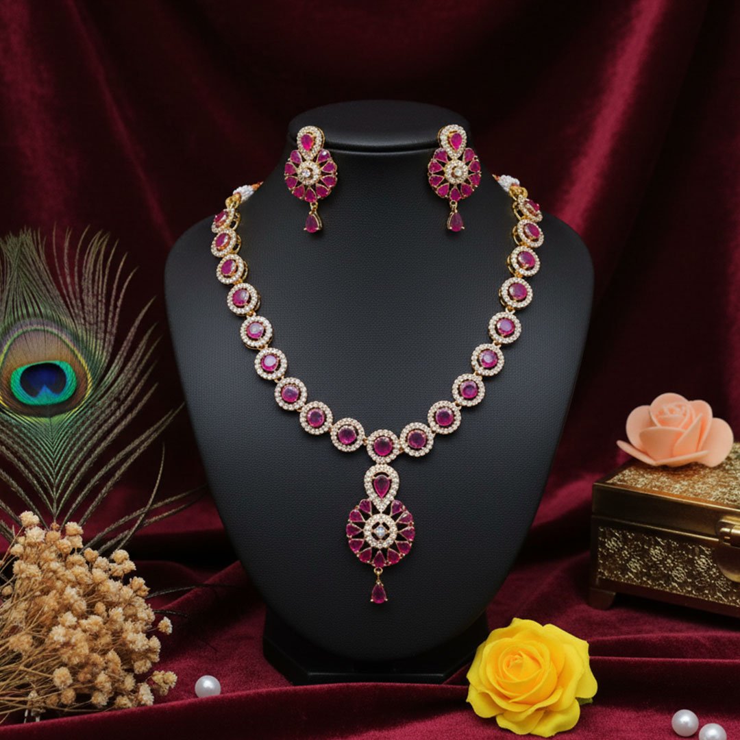 Make a regal statement with the Imperial Ruby Green Choker, a luxurious blend of sparkling stones, ruby-red accents, and emerald-green drops. Perfect for weddings, festivities, and grand celebrations, this set adds royalty to every look.
