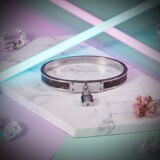 The most eye-catching feature is the small, functional-looking padlock charm that dangles from the central panel, giving the bracelet its signature “key” element and a touch of edgy glamour. The hinged design ensures easy wear and a secure, comfortable fit. This bracelet is an excellent choice for those who appreciate contemporary design, quality materials, and a subtle nod to iconic designer aesthetics.